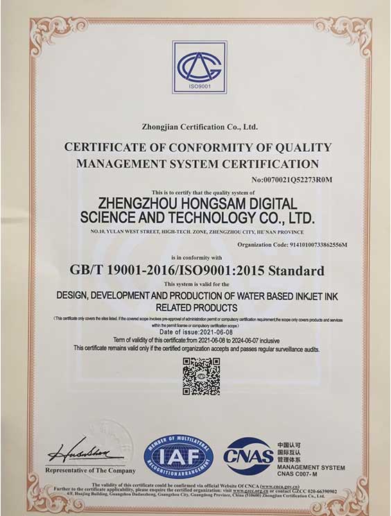 2、鴻盛數(shù)碼是中國(guó)輕工業(yè)行業(yè)標(biāo)準(zhǔn):紡織品印染噴墨第2部分《分散染料墨水》標(biāo)準(zhǔn)第一起草單位;