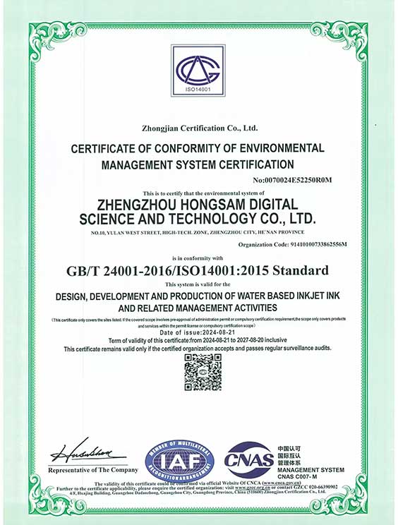 4、鴻美®分散染料墨水獲得了瑞士OEKO-TEX機(jī)構(gòu)的ECO-PASSPORT(環(huán)保通行證)權(quán)威認(rèn)證證書(shū);