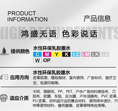 可以直接說鴻盛數碼環保水性乳膠墨水市場對標為UV墨水及弱溶劑墨水,其中最重要的一點就是環保特性,接觸過uv或弱溶劑打印的客戶都知道,uv墨水都會有比較刺激性的氣味,即使打印完成的畫面也會持續揮發出刺激性的氣味,這種刺鼻氣味就是可揮發性有機物VOC。味會刺激眼睛,鼻腔,長時間接觸墨水,氣味會通過呼吸進入人體并溶于血液,且無法排除體外,慢慢造成眼睛刺激,血液損壞,中樞神經損傷,腎損壞。因此,所有正規廠生產uv墨水的包裝瓶上均有對人體傷害程度的警示。還有不光是墨水,還要注意led紫光燈,對人體尤其是對眼睛的損害具有不可修復傷害。因此,這也造成了了工人不愿意干,招工難,工廠相關人才也無法有效沉淀,更重要的是與國家綠色生產、環保生產的國策對立。