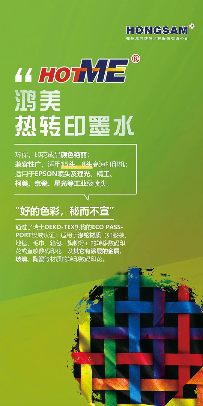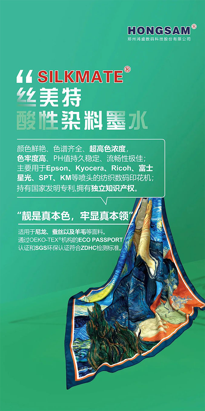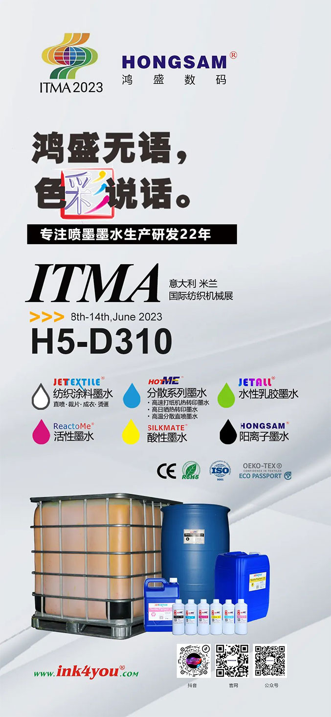 鴻盛數(shù)碼致力于具有國際環(huán)保共識方向的數(shù)碼噴墨技術研究、開發(fā)及應用推廣,開發(fā)、生產(chǎn)適應數(shù)碼噴墨技術進步的功能性、環(huán)保型噴墨墨水。此次鴻盛數(shù)碼攜全系列紡織墨水亮相ITMA展會現(xiàn)場,為大家呈現(xiàn)綠色環(huán)保前沿的數(shù)字噴墨打印方案。