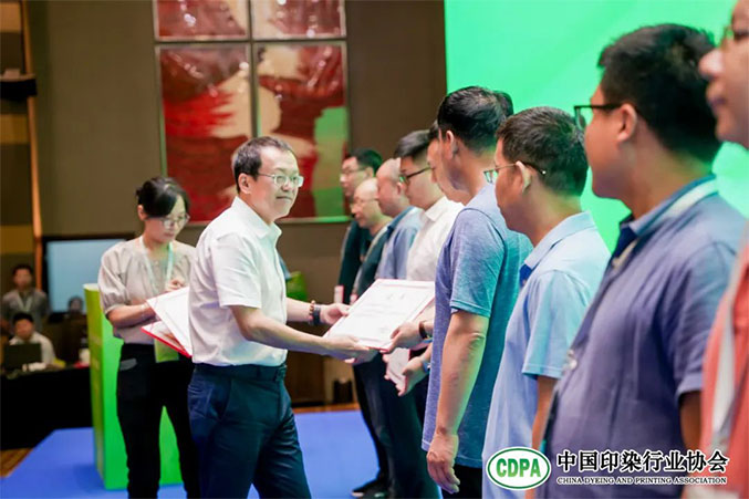 會上,中國印染行業協會會長陳志華宣讀了《關于“第十六批中國印染行業節能減排先進技術推薦目錄的決定》,與會領導頒發了證書。