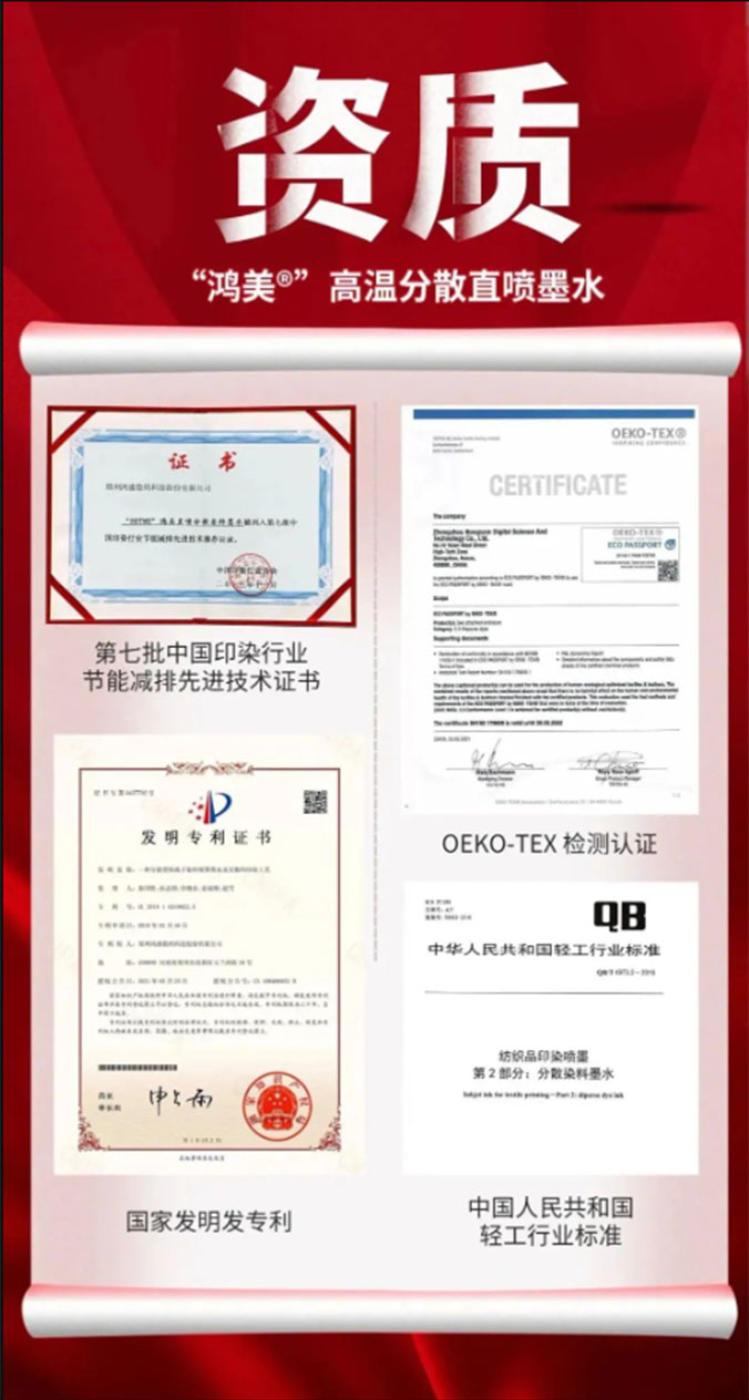2020年初,客戶果斷選擇做高溫分散直噴工藝,經(jīng)過鴻盛數(shù)碼與希望高科及客戶三方配合,于2020年底確定使用鴻盛的“鴻美”高溫分散直噴墨水,2021年年初正式上機測試。