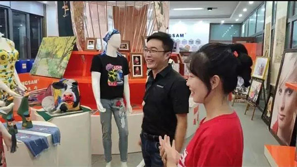 4、轉移到打印平臺,撫平布料表面,不管是干打還是濕打,調整噴頭和布面到合適高度,保證打印質量,也要保證噴頭安全,防止出現刮擦噴頭情況發生;
