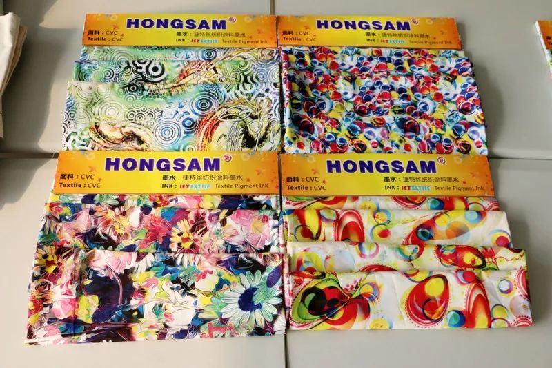 捷特絲紡織涂料墨水配套星光SG1024SA噴頭現(xiàn)場(chǎng)打印純棉匹布展示,近些年,鴻盛數(shù)碼針對(duì)紡織涂料多面料印花的研發(fā)有了更多的結(jié)果,尤其是“捷特絲®”紡織涂料在CVC面料、PU皮革、20D尼絲紡等復(fù)雜面料上的成功應(yīng)用,真正實(shí)現(xiàn)了鴻盛“捷特絲”紡織涂料墨水“一種墨水,所有織物”。