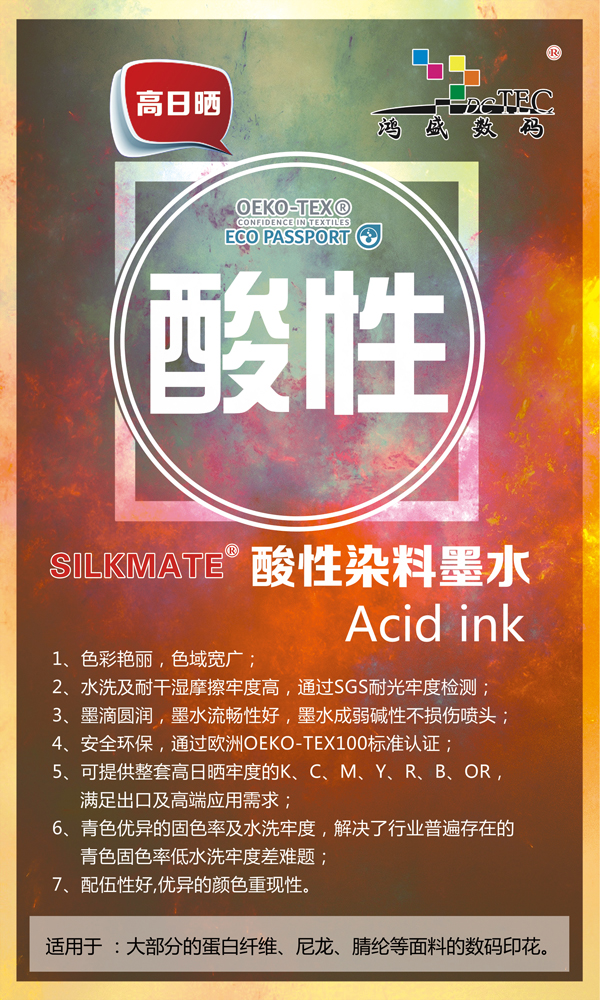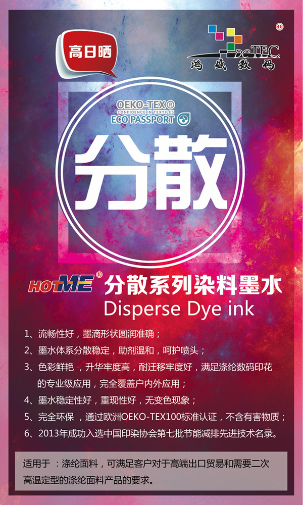 “捷特絲”紡織涂料墨水,獨特的特黑和紅色系,使得圖案層次豐富,細節更加突出;“鴻美”分散系列墨水根據市場需求細分分散種類,推出“高日曬熱轉印/分散墨水”“高溫分散直噴墨水”“高溫分散HF型免水洗墨水”滿足不同印花需求客戶;“絲美特”酸性染料墨水和“銳美”活性染料墨水均要推出出“高日曬”系列,很大程度上提升了青的固色率和整體的日曬牢度,滿足客戶的應用。