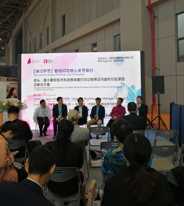 在展會期間舉行的數碼印花論壇上,王總作為嘉賓,對觀眾提出的問題一一做了解答。