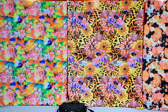 現場采用Epson F9280配合高溫分散直噴墨水打印展示,采用直噴蒸化水洗工藝,具有優異的升華、遷移牢度、耐光牢度;鴻盛更是推出“鴻美”HF型分散直噴墨水(免水洗),無需水洗即可達到優異的摩擦牢度,適合不宜水洗及不具備水洗條件用戶。