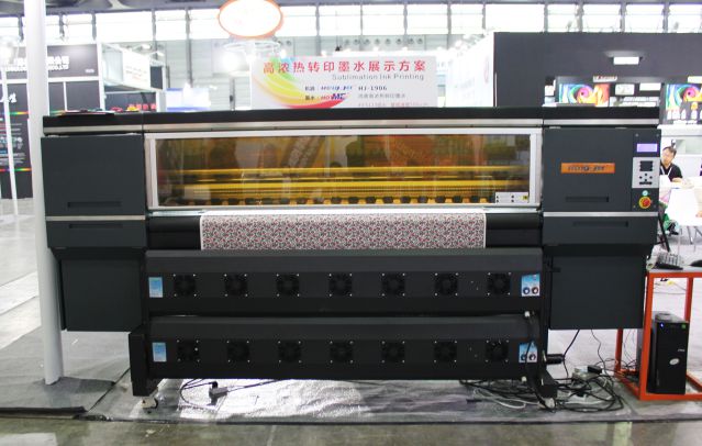 “鴻美”高濃熱轉印墨水配套四個5113噴頭HJ-1906高速數碼印花機,高速度可達150㎡/h,針對超薄熱轉印紙,有效降低紙張成本。墨水轉印效果佳。而此款墨水同樣早已在2013年入選第七批中國印染協會節能減排先進目錄。