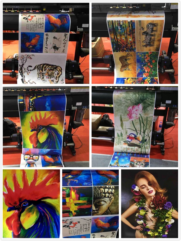 “鴻彩6®”納米水性顏料墨水是鴻盛數碼經典產品,適用于高端影像輸出、藝術品復制、廣告圖文、醫療影像以及印刷行業數碼打樣等。本屆展會鴻盛數碼使用MIMAKI JV33演示“鴻彩6®”納米水性顏料墨水在油畫布上的高品質輸出效果,其細膩、真實自然的還原真實畫面的效果受到現場參展觀眾的一致好評。