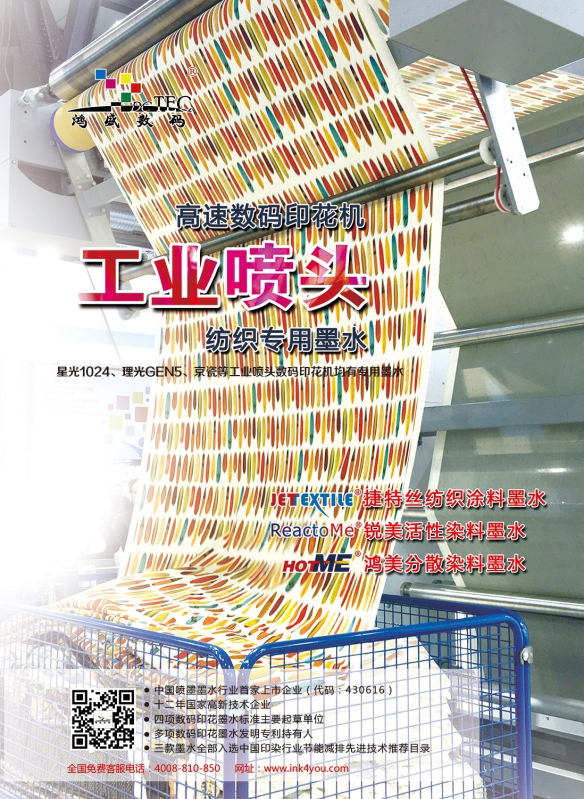 雙5113噴頭,對于墨水的流暢性及色域有更高的要求,此次展會,鴻盛數碼新推出的捷特絲“Y708”紡織涂料墨水與現場雙5113高速導帶式數碼印花機配套展示,展現了紡織涂料墨水在純棉匹布無水直噴數碼印花的全部風采,吸引了不少客戶前來觀摩。