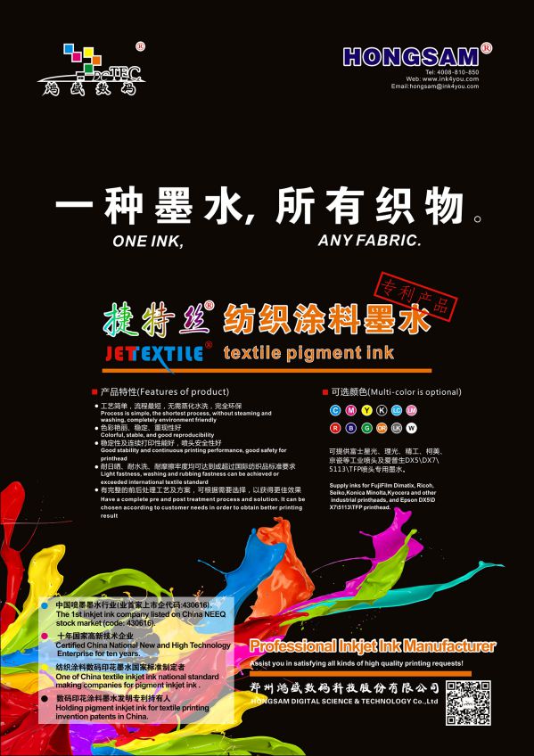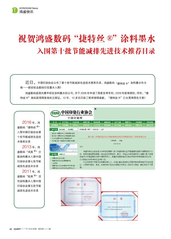 鴻盛“捷特絲”紡織涂料墨水入圍節能減排先進技術推薦目錄