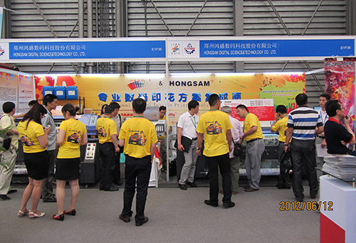 上海銳美數碼印花科技有限公司作為鄭州鴻盛數碼科技股份有限公司全資子公司,鴻盛全系列染、顏料墨水產品華東區代理,鴻盛紡織品數碼印花墨水系列產品全國總代理參加了此次展會。展位號:E1館F36;展會時間:2012年6月12-16日;展會地點:上海新國際博覽中心。