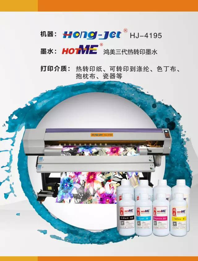 “鴻美?”熱轉(zhuǎn)印數(shù)碼印花方案配套使用HJ-4195工業(yè)級(jí)高速紡織數(shù)碼印花機(jī),機(jī)器采用工業(yè)級(jí)壓電5113噴頭,超高速、高精度打印。HJ-4195生產(chǎn)效率高,噴頭成本低,設(shè)備成本低,可大幅降低生產(chǎn)成本。