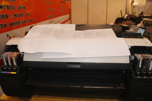 在銅版紙上直接噴墨打印一度成為行業難題。此次展會,鴻盛數碼在現場展示了EPSON 7908使用“JETALL®”水性*能顏料墨水銅版紙打樣方案,此套方案適用于印刷廠、廣告設計公司、菲林輸出公司等。EPSON 7908配合色彩鮮艷、附著力強、摩擦牢度高的“JETALL®”水性*能顏料墨水,利用專業色彩管理軟件,在現場為觀眾展示了銅版紙直接噴墨打樣。展會現場打印出來的圖文色彩艷麗、光澤度好,再加上此套方案操作簡單,使用方便,無數現場觀眾駐足觀看。