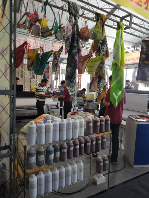 此次2012國(guó)際泳裝展上,HJ-8420配合“捷特絲®”涂料墨水直噴泳裝布、成衣印花,其超乎想象的打印速度,逼真的打印畫(huà)面,以及環(huán)保、節(jié)約資源的特性,吸引眾多現(xiàn)場(chǎng)觀眾的目光。此套方案采用的“捷特絲®”二代紡織涂料墨水是一款應(yīng)用于紡織品數(shù)碼印花的專業(yè)墨水,經(jīng)過(guò)200納米級(jí)的精細(xì)過(guò)濾,根據(jù)印花速度和面料情況,客戶可以選擇自己的打印精度。鴻捷直噴數(shù)碼印花方案省去了傳統(tǒng)的制版、轉(zhuǎn)印過(guò)程,方便、快捷的操作方式,更是響應(yīng)了“十二五”規(guī)劃的要求,環(huán)保、節(jié)水、低耗能。