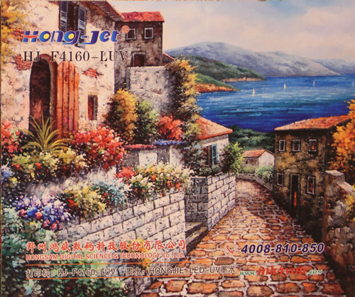 Hong-Jet 4160-LUV使用鴻盛UV光固化墨水打印各種特殊材料:HJ-F4160-LUV LED-UV平板打印機,擁有真正工業化生產平臺吸附系統,可吸附不同打印材料;且噴頭高度可調,可打印不同厚度的材料,滿足了客戶對多用途工業化生產的需求。此次第七屆中國義烏框業與裝飾畫展覽會上,HJ-F4160-LUV配合鴻盛UV光固化墨水,現場打印瓷磚、玻璃、亞克力板等多種特殊材質,*高精度和超高速度的輸出效果,以及鴻盛UV光固化墨水的細膩呈現,贏得現場眾多觀眾的“芳心”。