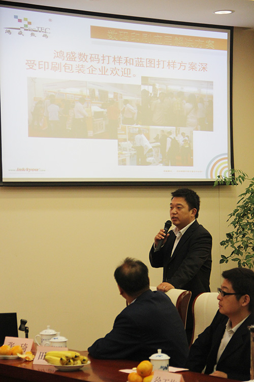 鄭州鴻盛數(shù)碼科技股份有限公司的周韜副總經(jīng)理做了題為《噴墨技術(shù)在印刷行業(yè)的應(yīng)用 》的分享,向與會(huì)者詳細(xì)介紹了鴻盛數(shù)碼公司及其在噴墨印刷行業(yè)所做的準(zhǔn)備,并展望了鴻盛在印刷行業(yè)的未來(lái)。