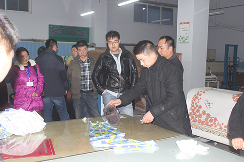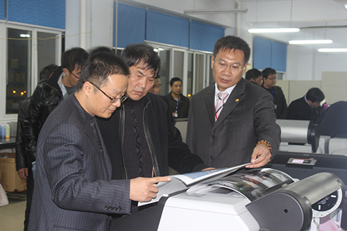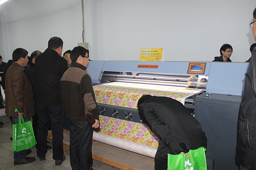 2012年11月10日17:00全體參會人員一起參觀了鄭州鴻盛數碼科技有限公司。鄭州鴻盛數碼科技有限公司位于國家級鄭州高新技術產業開發區,公司立足于數碼噴墨技術研究和應用推廣,是集研發、生產、銷售噴墨墨水和紡織品數碼印花方案推廣于一體的專業公司。鴻盛數碼在研發優勢、墨水優勢的基礎上,結合多年的印染工作經驗和對數碼印花市場信息、設備應用的深刻理解,針對不同面料和應用目的,研發了不同的數碼印花應用方案,方案包括設備、軟件、色彩管理、墨水配套、應用操作培訓、技術服務等,解決客戶對數碼印花不了解、設備選型與墨水不配套、不會操作的種種疑難。