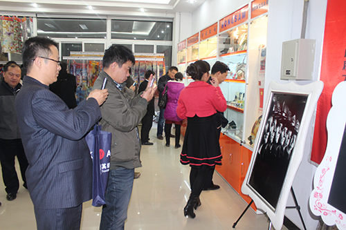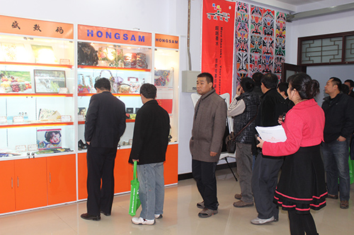 參會人員在鴻盛數碼展廳觀看鴻盛墨水打印成品展示