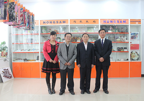 中國印染行業協會副秘書長邢惠路(左三)參觀鴻盛數碼合影留念