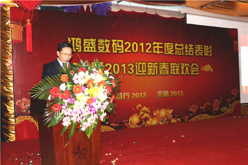 接下來,鴻盛數(shù)碼總經(jīng)理秦國勝先生發(fā)表了簡短而熱情洋溢的講話,高度總結(jié)了2012年度公司的運(yùn)營情況,同時(shí)展望了2013年公司將要面對(duì)的挑戰(zhàn)與機(jī)遇。