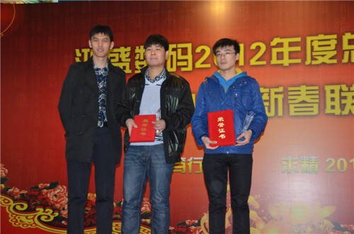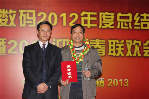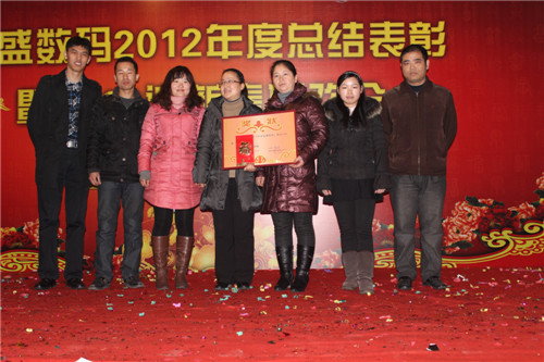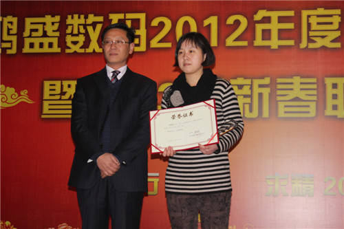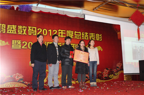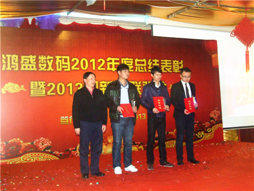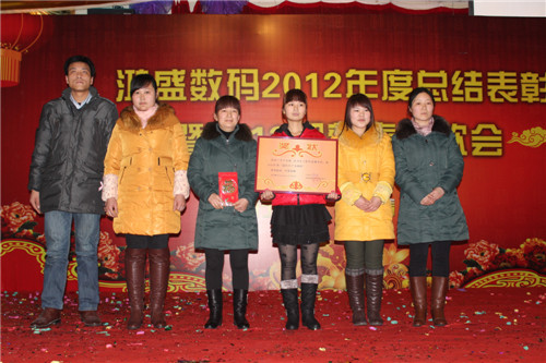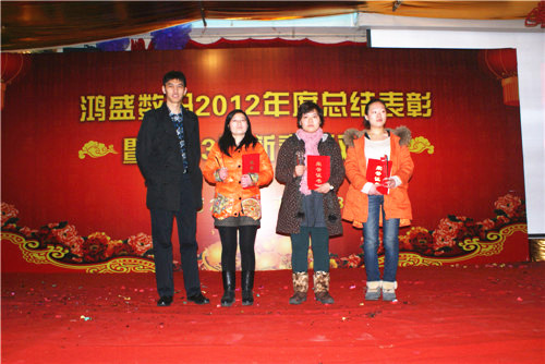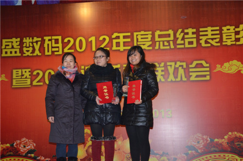 獲獎(jiǎng)?wù)撸簴|風(fēng)路分公司李惠、外貿(mào)部鄭小麗、工廠辦公室于風(fēng)勤鴻盛數(shù)碼 數(shù)碼噴墨,鴻盛數(shù)碼2012年度總結(jié)表彰暨2013迎新春聯(lián)歡會(huì)盛大舉行
