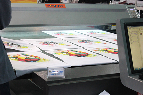 上海銳美作為鴻盛全系列噴墨墨水產品華東區總代理,致力于為行業客戶提供數碼印花解決方案,竭誠為客戶解決各種數碼印花實際應用問題。本次展會上大放異彩的涂料無水數碼印花方案主要集中應用于T恤和服裝裁片等數碼印花,由于工藝簡便、沒有污水排放,且適用于所有面料等特點,涂料數碼印花方案得到眾多印染行業客戶的關注和支持。