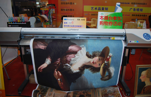 文化藝術品復制領域的展會平臺是本屆北京國際噴印雕刻標識技術展的服務創新,同時也體現了新時期國人對于精神文化的強烈需求。鴻盛數碼攜“鴻彩6®”第四代壓電大幅面顏料墨水打印油畫布方案亮相此次展會,使用羅蘭新款VersaArt RA-640打印機,憑借其令人驚嘆的色彩再現功能,配合全新“鴻彩6®”第四代壓電大幅面顏料墨水,**逼真地再現經典藝術品原作的風采。