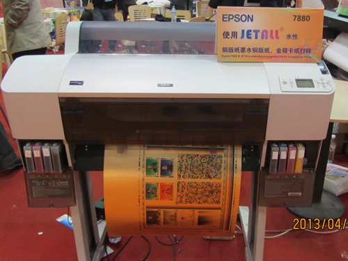 鴻盛經典--“JETALL®”水性**顏料墨水打印銅版紙方案在本屆展會也有現場操作。銅版紙直接打印無需涂層,且墨水水性環保、呵護噴頭,無毒、無刺激性氣味,適合印刷所有紙張、高飽和度色彩呈現,這些都是用戶給予“JETALL®”水性**顏料墨水的高度評價,而且“JETALL®”水性**顏料墨水是目前全國首家突破壓電六代噴頭的銅版紙打印墨水。EPSON 7880使用“JETALL®”水性**顏料墨水打印銅版紙方案的實際市場口碑,相信2013北京春季噴印雕刻標識技術展覽會現場眾多觀眾的慕名來訪就足以說明。