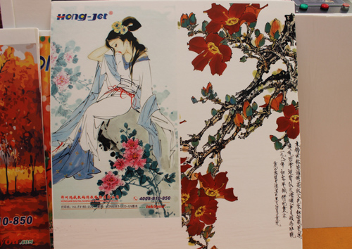 2013第二十一屆上海國際廣告技術設備展覽會,鴻盛數碼展位現場展示的噴墨方案有: HJ-F4160-LUV使用鴻盛LED-UV墨水打印各種特殊材料方案; HJ-T4160A使用“捷特絲®”二代紡織涂料墨水直噴匹布印花方案; HJ-4162使用“鴻美®”二代熱轉印墨水轉移印花方案; HJ-4162使用“鴻彩6®”四代顏料墨水高端油畫復制方案;