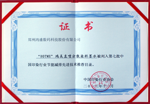2013全國印染行業節能環保年會還表彰了十幾家“節能減排**企業”,發布了《第七批中國印染行業節能減排先進技術推薦目錄》,并頒發證書。其中鴻盛數碼的“HOTME”鴻美直噴分散染料墨水被列入第七批中國印染行業節能減排先進技術推薦目錄。另外,鴻盛數碼苑雯潔經理題為《鴻盛數碼直噴分散染料墨水應用研究》和《鴻盛數碼“捷特絲”紡織涂料墨水無水印花應用研究》兩篇論文入選2013傳化股份全國印染行業節能環保年會論文集。