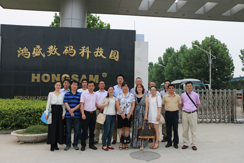 會議結束,與會人員參觀了鴻盛數碼科技園,鴻盛數碼董事長秦國勝對公司紡織墨水應用情況作了詳細介紹。