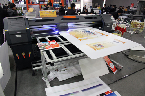 LED-UV打印是新近被行業(yè)人士奉為“環(huán)?!钡墓に?,2014廣州迪培思展會上鴻盛LED-UV噴墨打印就為行業(yè)用戶現(xiàn)場展示了它的“神奇”佳作,HJ-F1802-LUV配合鴻盛LED-UV墨水現(xiàn)場打印PVC板、瓷片、車身貼等各類材質(zhì)。HJ-F1802-LUV為卷板兩用,解決了機(jī)器打印卷平材一體的難題,主要應(yīng)用于廣告、影樓,裝飾等行業(yè);HJ-F1802-LUV攜手鴻盛LED-UV墨水可打印玻璃、金屬等幾乎任何介質(zhì),而且使用鴻盛LED-UV墨水色彩鮮艷、色域?qū)拸V,生產(chǎn)過程中不會產(chǎn)生廢氣、廢液等,這種印花工藝的生產(chǎn)方式和特點(diǎn)在眾多行業(yè)都有著極高的使用價值。展會期間不乏眾多行業(yè)用戶直接洽談、咨詢。