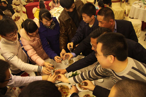 十一時,聚餐正式開始,總經(jīng)理梁朝民先生致祝酒辭。