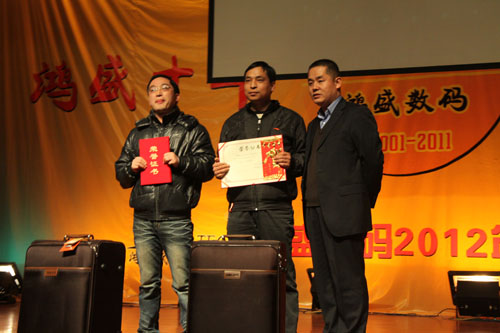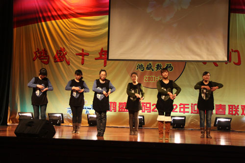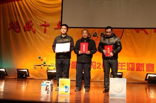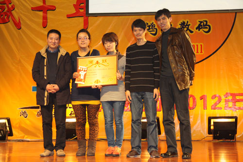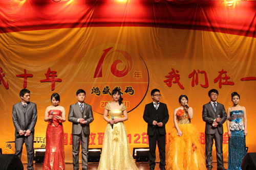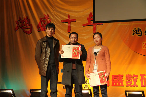 鴻盛數(shù)碼創(chuàng)建于2001年,至今已走過了十年的歷程,十年間,鴻盛數(shù)碼上下齊心,艱苦奮斗,一年一個臺階,向世人呈現(xiàn)了一個強大、繁榮、有責(zé)任感的噴墨企業(yè)。值此龍年新春佳節(jié)即將到來之際,鴻盛數(shù)碼全體員工歡聚一堂,在高新區(qū)金橋商務(wù)酒店舉行了“鴻盛十年,我們在一起”鴻盛數(shù)碼2012年迎新春聯(lián)歡會。