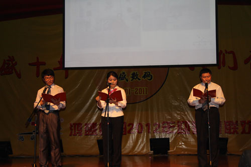 詩朗誦:《鴻盛十年》,由鴻盛各年齡段的員工代表合作完成。