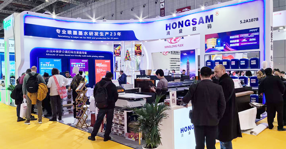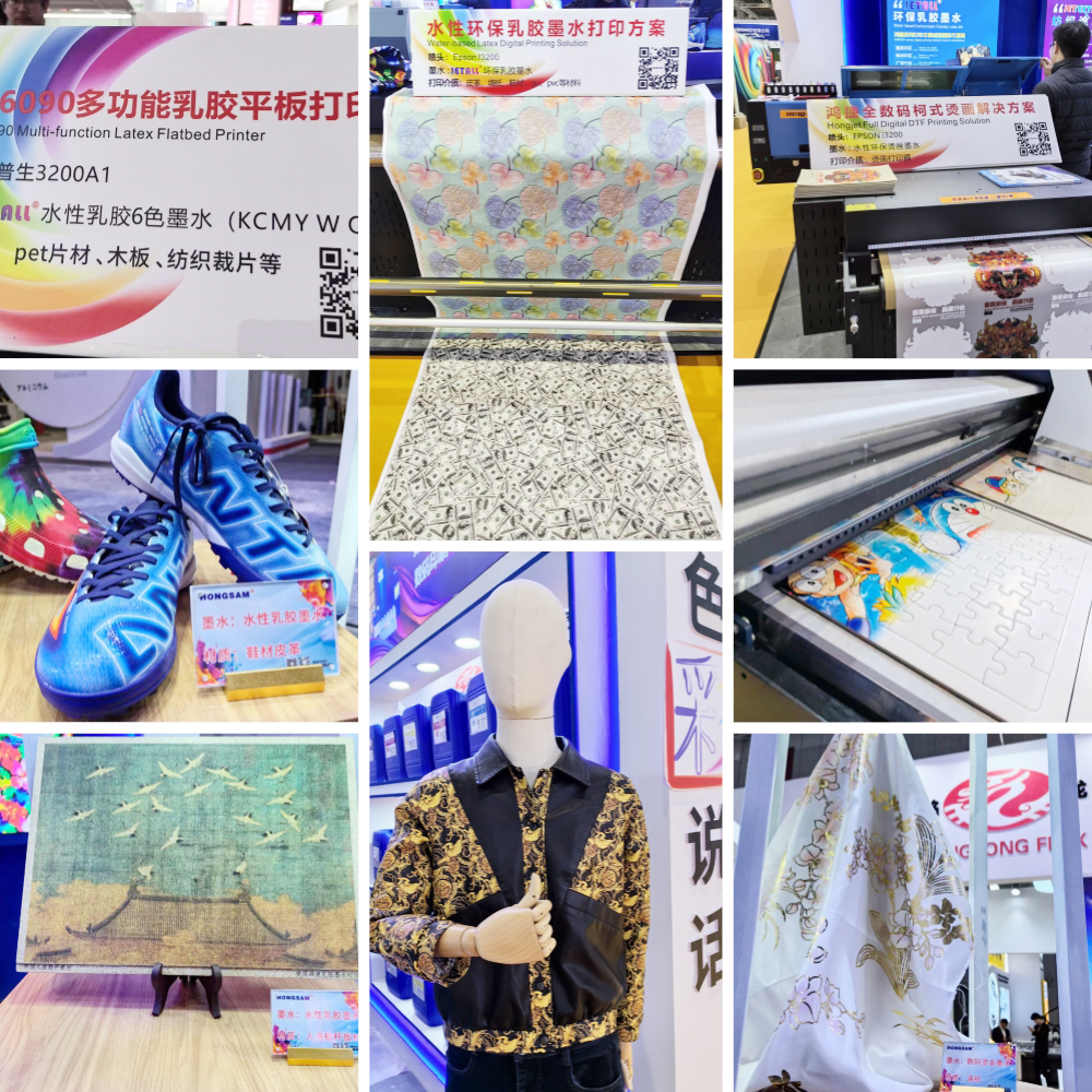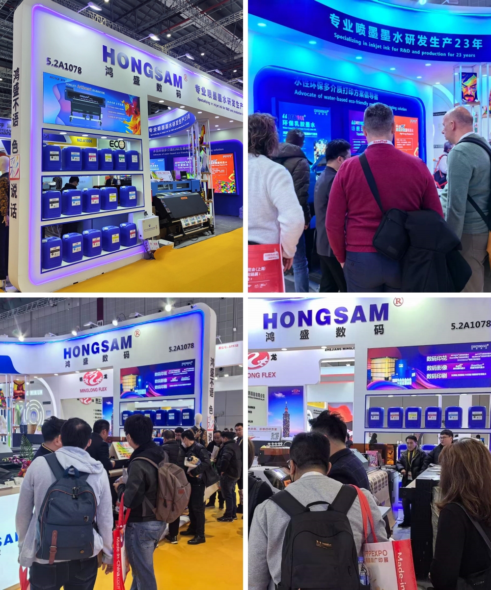 本次展會,鴻盛數碼展示了水性乳膠環保墨水打印方案、旗下全系列墨水(數碼印花系列:捷特絲紡織涂料墨水、鴻美分散染料墨水、銳美活性染料墨水、絲美特酸性染料墨水、鴻盛陽離子染料墨水,數碼影像系列:鴻彩6納米顏料墨水、EverNew高耐光染料墨水,數碼印刷系列:瓦楞紙/膠版紙/木紋紙/銅版紙專用墨水)、鴻捷全數碼柯氏燙畫解決方案,涵蓋了墨水、設備及打印方案,吸引了眾多觀眾駐足了解!