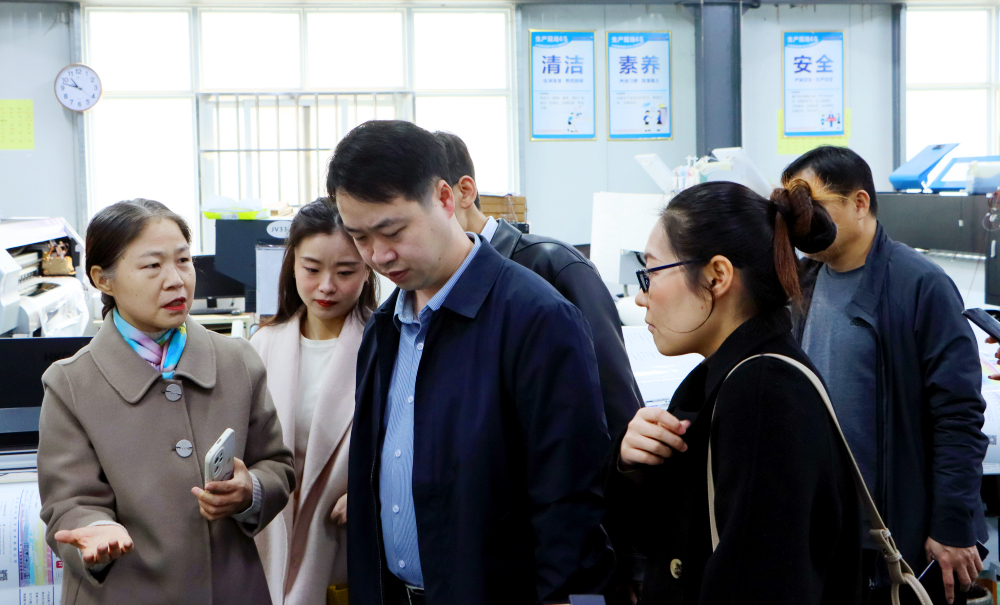 由河南省社會科學院數字經濟與工業經濟研究所副所長趙西三、助理研究員韓樹宇、尚思寧、牛雪妍、鄭州市中小企業服務中心副主任張晏端、經濟運行科科長楊峰組成的調研第一小組,首站選擇高新區3家企業進行調研。在高新區工信辦主任高哲、韓君慰的陪同下,調研組深入鴻盛數碼生產測試一線,調研了企業產品、品質管控、人才引育留用、國際市場拓展等情況,對鴻盛數碼的產品表示贊嘆,并且一致認為,鴻盛數碼水性環保噴墨打印墨水應用產生的社會和生態環保效益,具有更加深遠的意義,將有力推動傳統印染和印刷行業的產業轉型和技術升級,促進國家“雙碳”目標的實現。