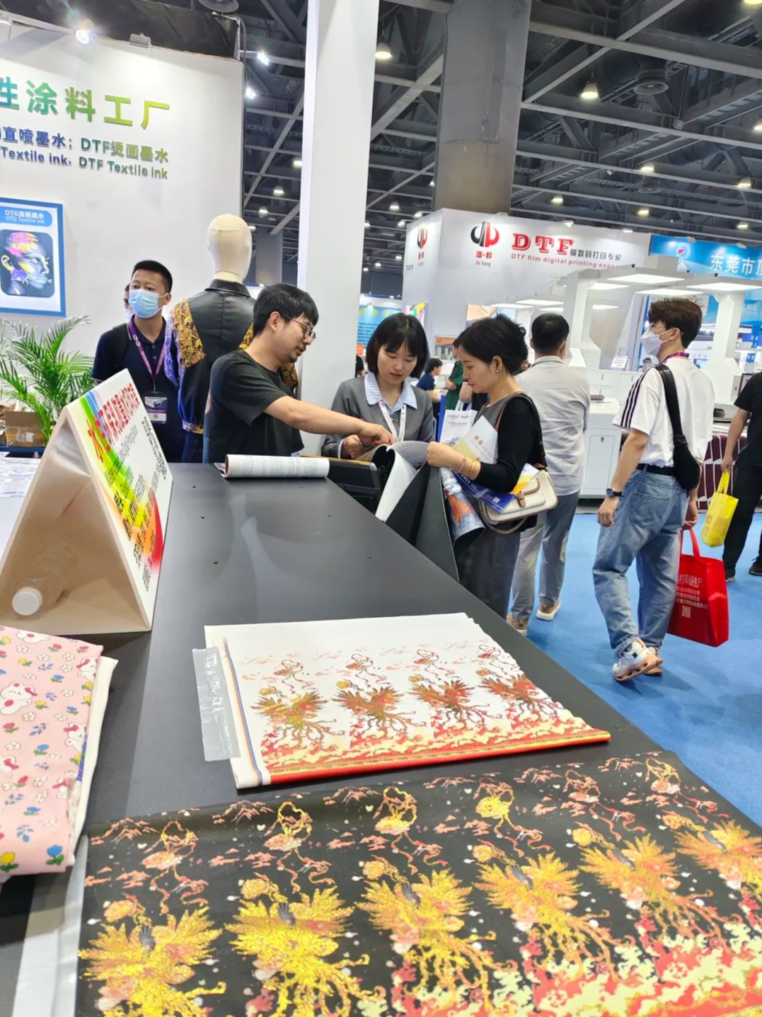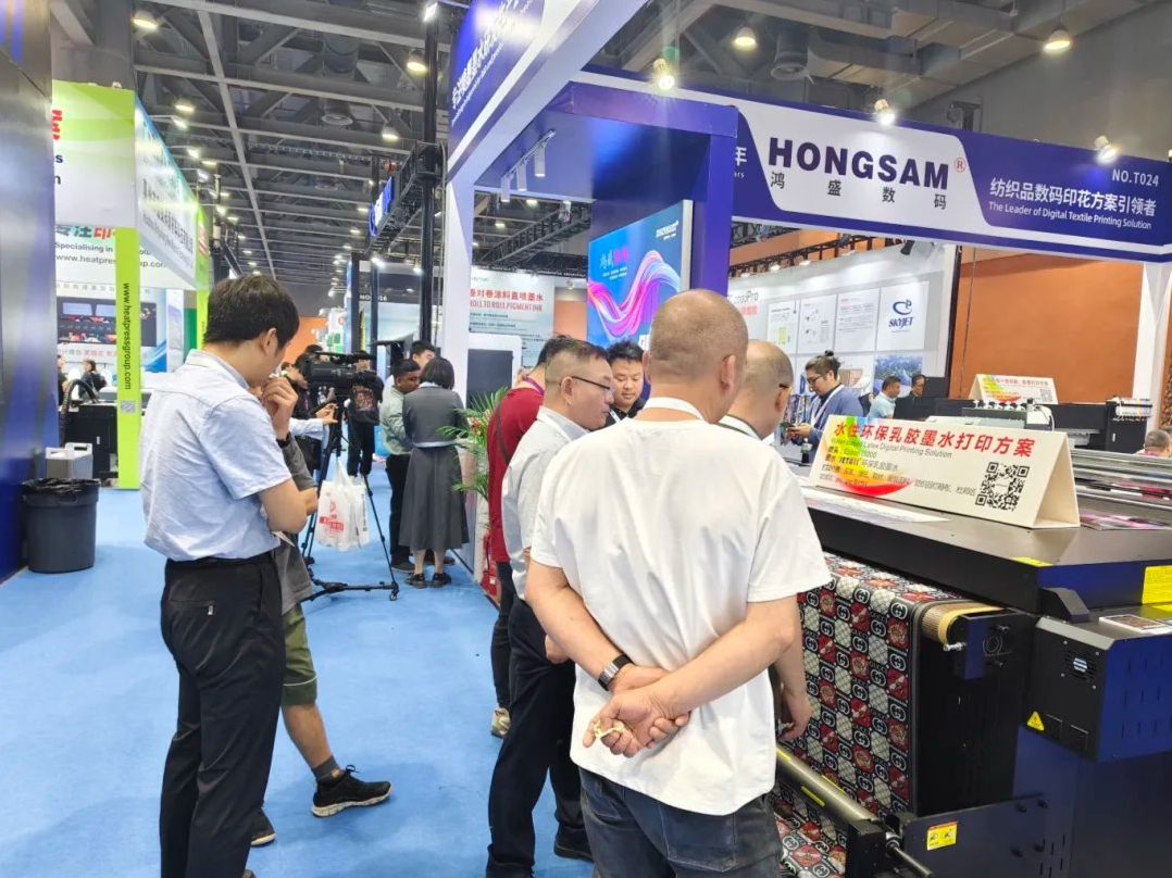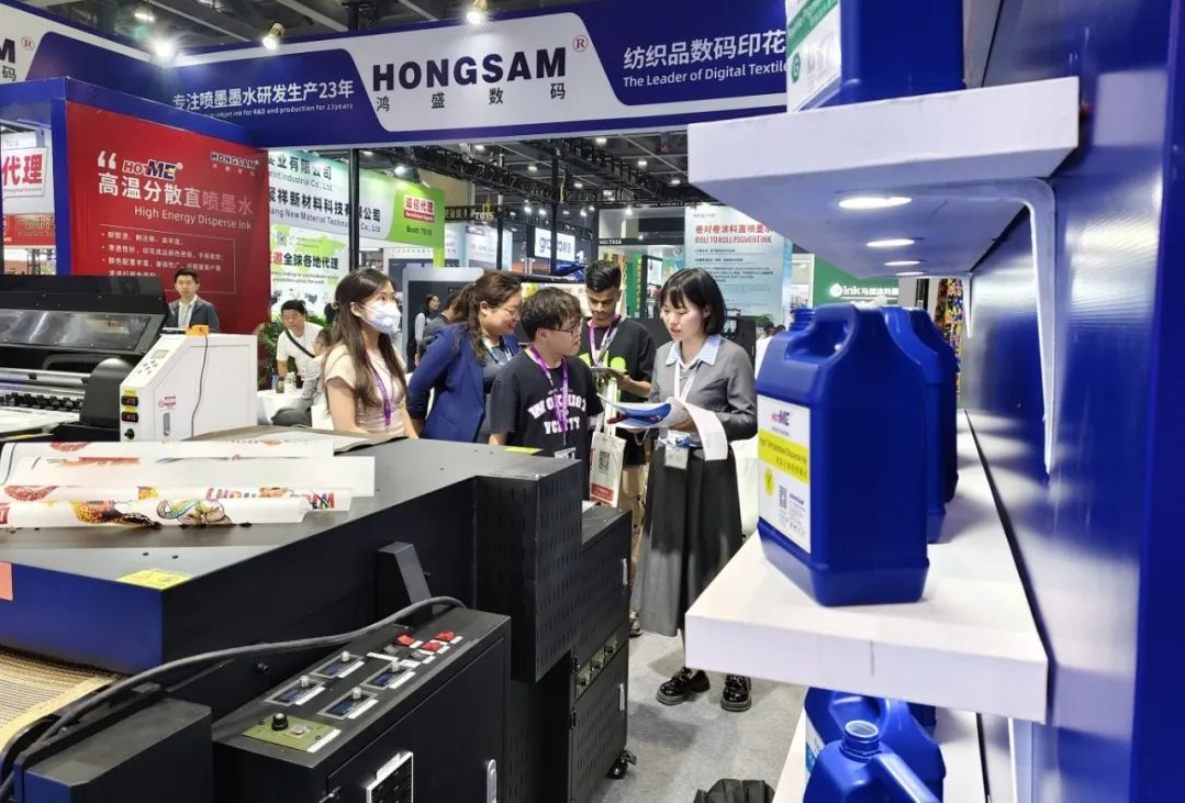 鴻盛數碼深耕噴墨行業23年,本次展會展示旗下全系列數碼印花墨水:捷特絲®紡織涂料墨水、鴻美®分散染料墨水、銳美®活性染料墨水、絲美特®酸性染料墨水、鴻盛陽離子染料墨水及水性環保乳膠墨水打印方案、不僅涵蓋了墨水及設備,還滿足不同客戶需求的打印方案,吸引了眾多觀眾前來了解咨詢。