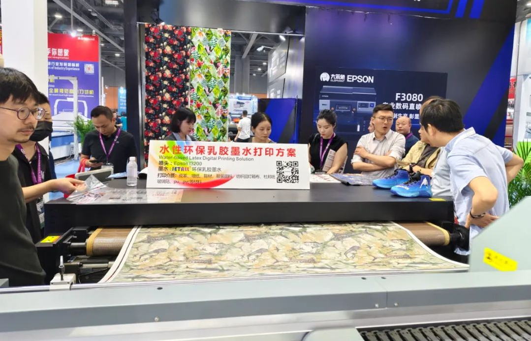 水性環保乳膠墨水打印方案具備超強的適應性,無論是皮革、墻紙、鞋材、服裝面料,還是紡織品燈箱布、玻璃貼、PU、PVC、軟包、標簽、特種紙張等材質,它都能輕松應對,實現高質量的打印效果。這種多功能性大大簡化了打印制作流程,提高了工作效率,同時也降低了客戶的采購成本。