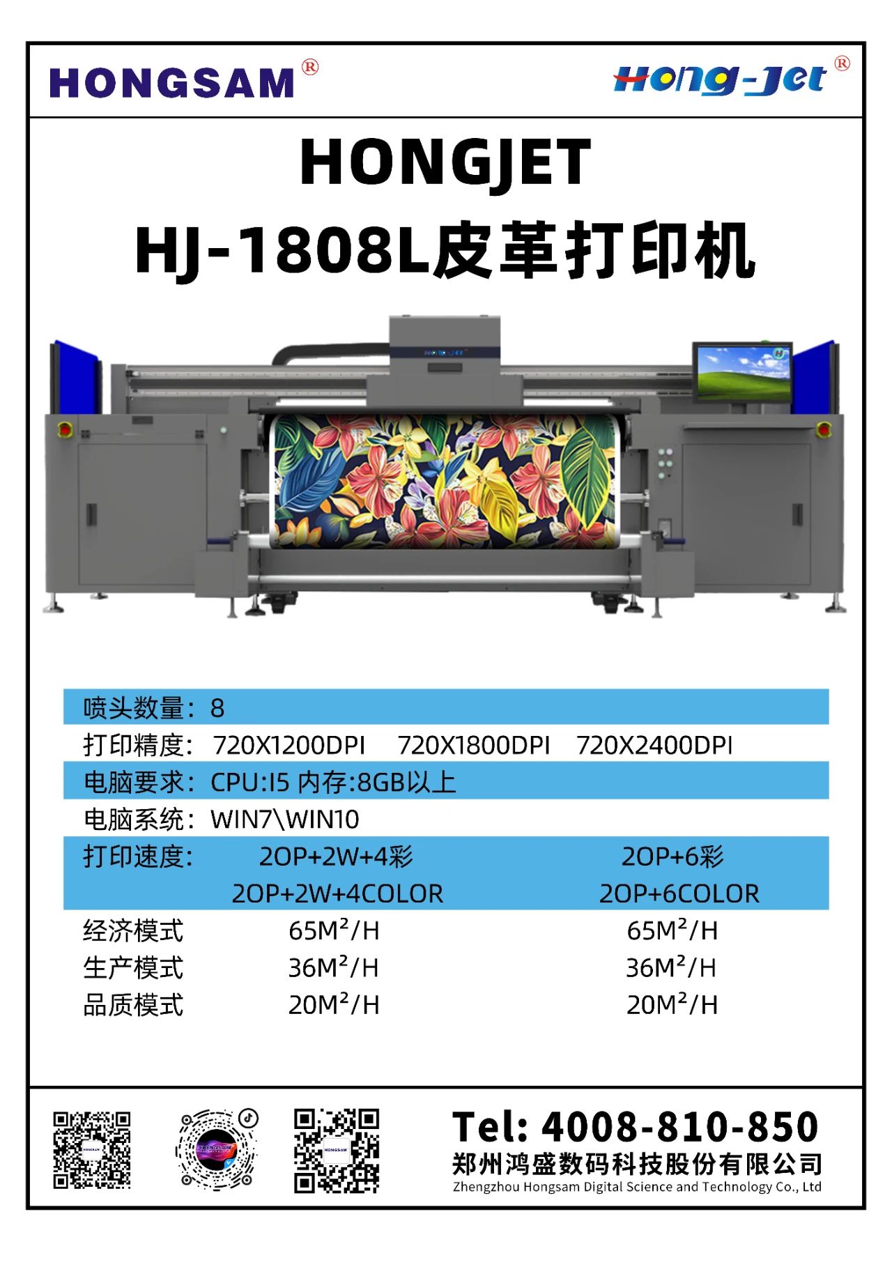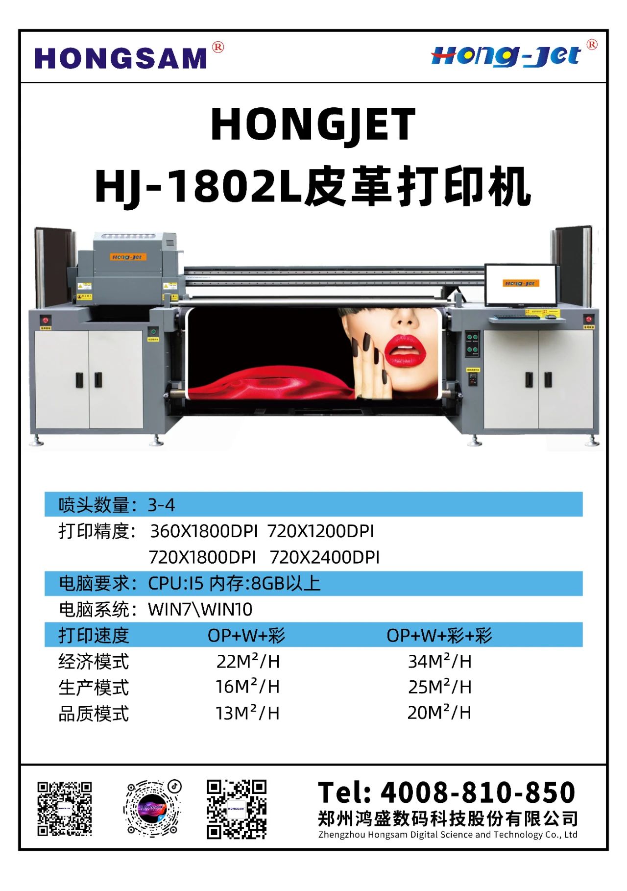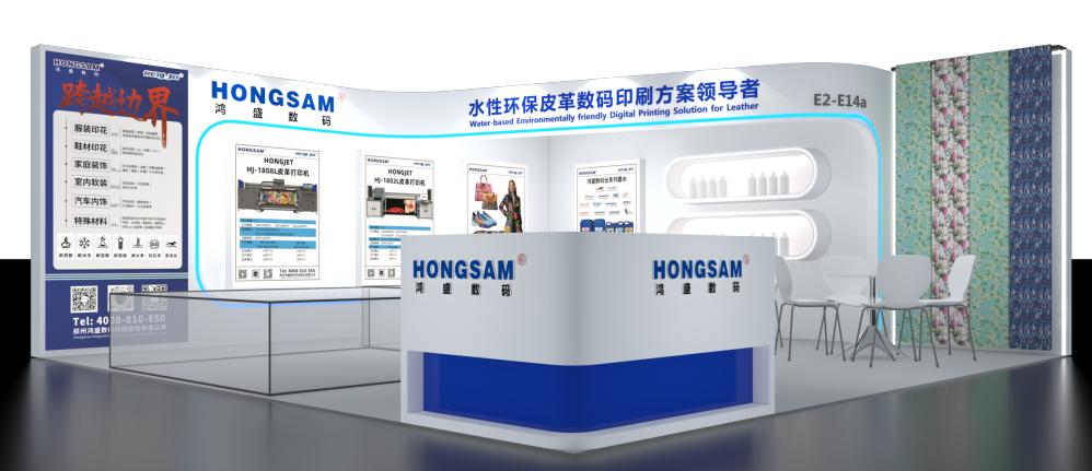 本次展會,鴻盛數碼(展位號:E2-E14a)將攜HJ-1808L皮革打印機、HJ-1802L皮革打印機、水性乳膠打印方案、鴻盛數碼全系列墨水(數碼印花、數碼影像、數碼印刷)等多款主力產品重磅出席此次展會。