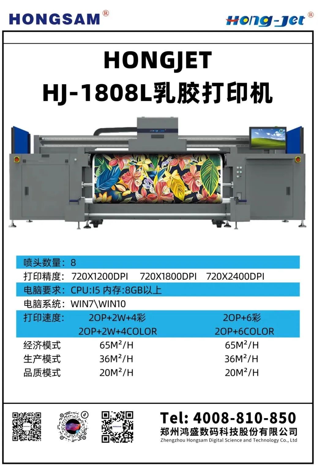 JETALL®水性環保乳膠墨水是完全水基(water based)顏料墨水,不含國際違禁化學品,沒有氣味,產品耐候、耐寒、抗氧化、抗折壓,并且解決了很多非親水性介質印花老大難問題;也給廣告、印刷、印花(家裝)等行業綠色生產找出了一個明朗的出路。JETALL®水性環保乳膠墨水于2023年6月被列入《第十六批中國印染行業節能減排先進技術推薦目錄》,應用領域廣泛、不限材料類型,滿足了更多應用場景的需求,為未來廣告、影像、印刷、印花、工業應用等各行業帶來了無限可能! 水性環保乳膠打印方案的優勢1.環保性鴻捷數碼的水性乳膠墨水是完全水基的顏料墨水,不含國際違禁化學品,無異味,無揮發性有機化合物(VOC)排放,符合環保要求,適用于對環保要求較高的應用場景,如室內裝飾、紡織品印花等。2.材料適應性水性乳膠方案可廣泛應用于多種材料,包括皮革、墻紙、鞋材、服裝面料、紡織品、燈箱布、玻璃貼、PVC、軟包、標簽、特種紙張等,特別適用于非吸收性介質和對環保要求較高的材料。3.打印效果乳膠墨水的耐候性、耐寒性、抗氧化性和抗折壓性能出色,解決了UV打印中圖案拉伸開裂的問題,打印圖案色彩鮮艷,牢度高,耐拉伸,適用于高牢度輸出。4.成本與效率水性乳膠方案的維護成本較低,且一臺設備可應對多種材料,減少了設備配置和維護成本,打印速度較快,例如HJ-1808L乳膠打印機每小時可輸出60m。5.市場地位鴻盛數碼作為噴墨行業的領先企業,其水性環保乳膠方案在行業內具有較高的認可度,尤其在環保和材料適應性方面表現出色。