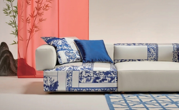 國禮青花系列由中國現代織錦創立人李加林、中國設計業十大杰出青年提名獎獲得者楊超兩位藝術家與顧家家居攜手打造,包括沙發、單椅等產品。 運用國際主義設計風格的“幾何學式”美學理念,對青花瓷中代表性紋樣進行提取、解變與重構,將傳統青花瓷元素與現代家居設計理念相融合,既保留了青花紋樣的古樸韻味,又滿足了現代家居的審美需求。 采用非遺織錦工藝,與傳統青花兩大國粹完美結合,為保證青花的精確度和細膩度,在青花中的潤色部分設計了不同的組織結構,如用現代織錦工藝紋花退暈的結構來表現畫面中山水人物豐富的漸變層次、虛實相映的織紋以及色彩,使得青花紋樣栩栩如生。