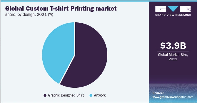 藝術品部分預計將成為增長最快的部分,從2022年到2030 年的復合年增長率為 10.5%。客戶越來越傾向于使用 T恤或其他服裝來支持一項事業或傳遞信息,預計這將有助于對這一細分市場的高增長。藝術品部分涉及由個人創建的要打印在T恤上的定制藝術品。希望打印他們的設計或對所需打印有清晰圖片的消費者是為 T恤設計的藝術品的潛在客戶。平面設計襯衫細分市場占有最大的市場份額,占2021年全球收入的 57% 以上。高份額歸因于對帶有預印圖形的定制 T 恤的需求不斷增長。 平面設計 T 恤涉及打印不需要任何進一步修改的現有設計。 想要以較低價格立即獲得產品的客戶更喜歡這種預印的圖形設計 T 恤。