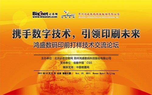 由必勝印刷網與鄭州鴻盛數碼科技股份有限公司聯合主辦的“攜手數字技術,引領印刷未來——鴻盛數碼印前打樣技術交流論壇”將于2011年10月21日在北京湖南大廈盛大召開